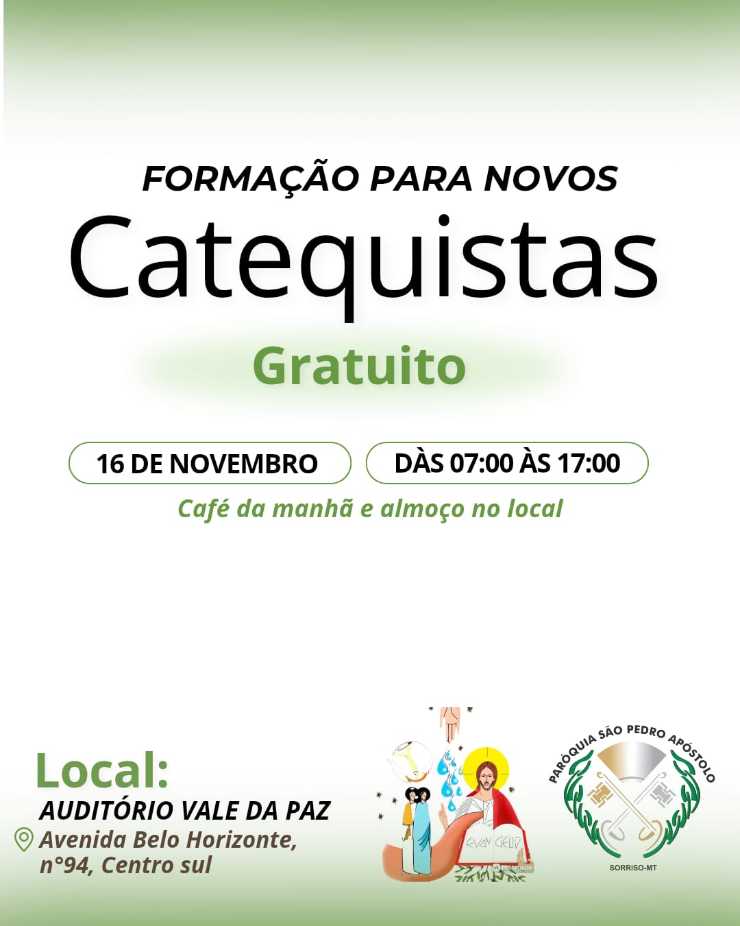 Local: Auditório Vale da Paz — Av. Belo Horizonte, nº 94, Centro Sul