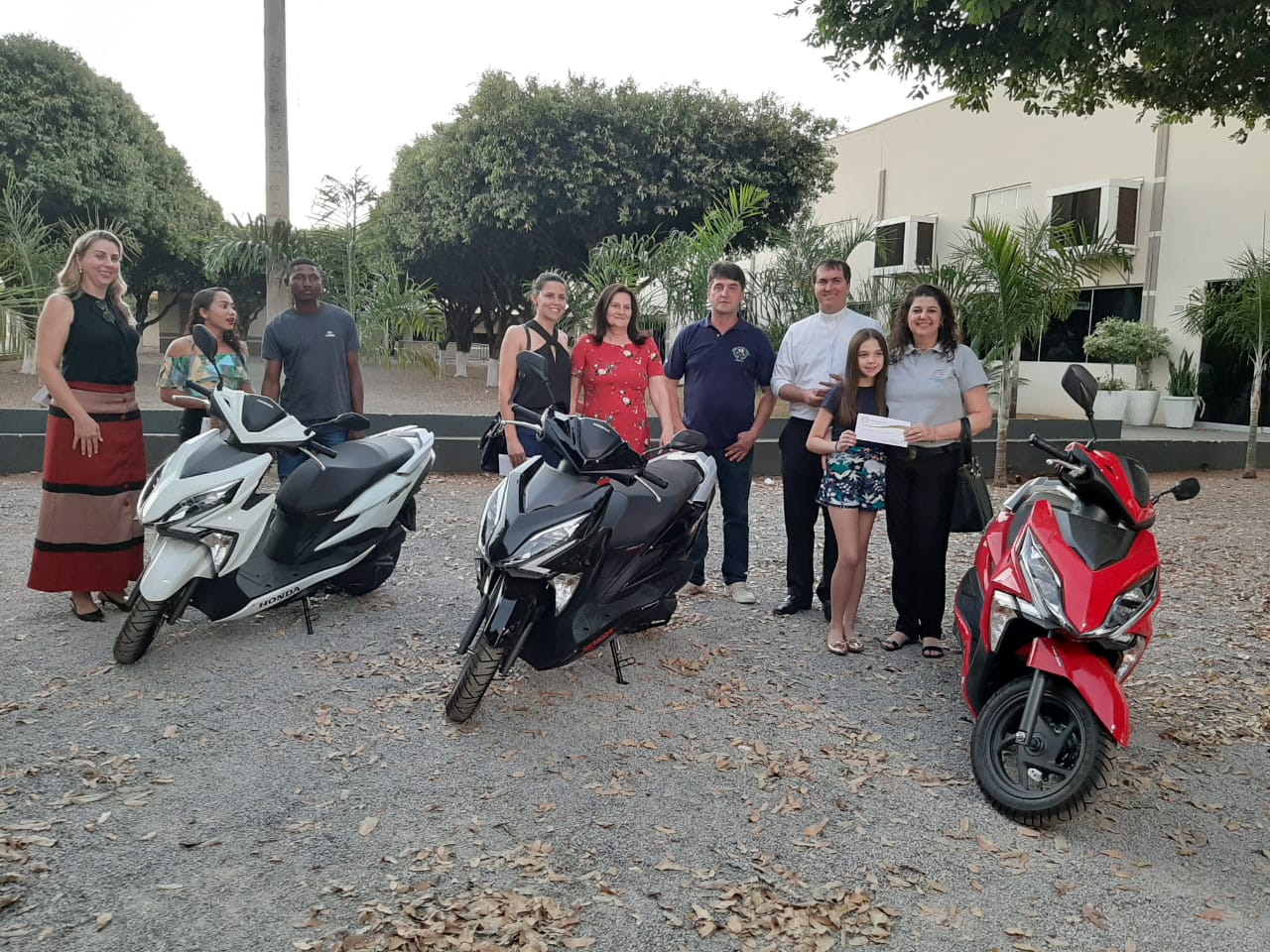 A Paróquia São Pedro Apóstolo entregou na tarde de ontem (17), no estacionamento do GESP, as três motos da Promoção Ligados na São Pedro, realizada no V Arraiá da São Pedro, e o Opala, do Prêmio Extra.